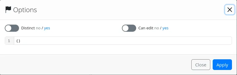 - simple key/val system: On the top select list, the administrator indicates what field of the chosen entity is the “key”. On the bottom select, the administrator indicates what field of the chosen entity is the “value”.