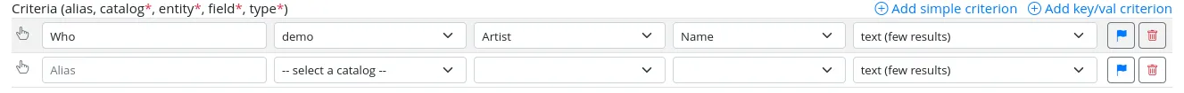 - catalog: The administrator must choose from a list of possible catalogs where the data related to the desired criterion can be found.