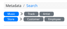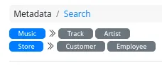 When the end-user opens the “Search” web application, categories of interfaces appear as blue badges in the upper left corner. Next to each category badge, gray search name badges are clickable, allowing end-users to access the desired search interface (see Fig. 1).