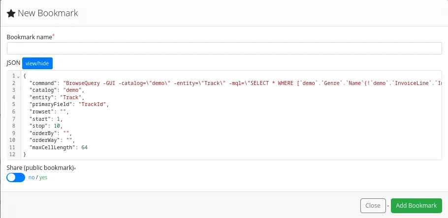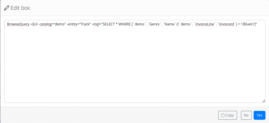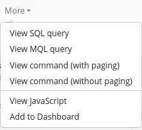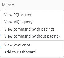 - View MQL query: Display the MQL query corresponding to the current selection.
