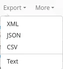 The export menu allows end-users to export the results in various file formats (XML, JSON, CSV, and Text) as shown in Figure 14. This feature should be used with caution, especially for results with a large number of records…