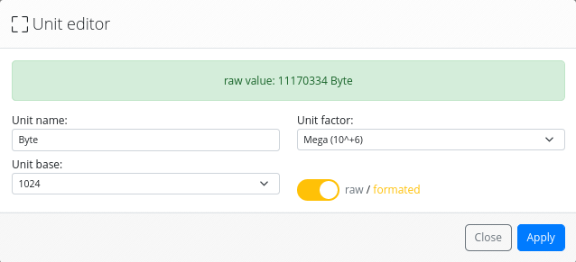 An administrator has the capability to configure certain fields so that end-users can display numeric values in an appropriate unit, rather than showing the raw value. End-users can set the unit by clicking on the value, which will open a modal, as shown Figure 22 where the display unit can be changed.