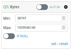 - A “reset” link to reset “Max,” “Min,” and the “IS NULL” switch to their default values.